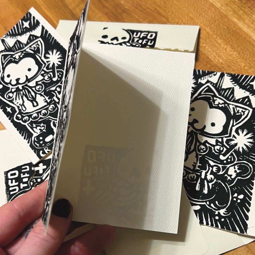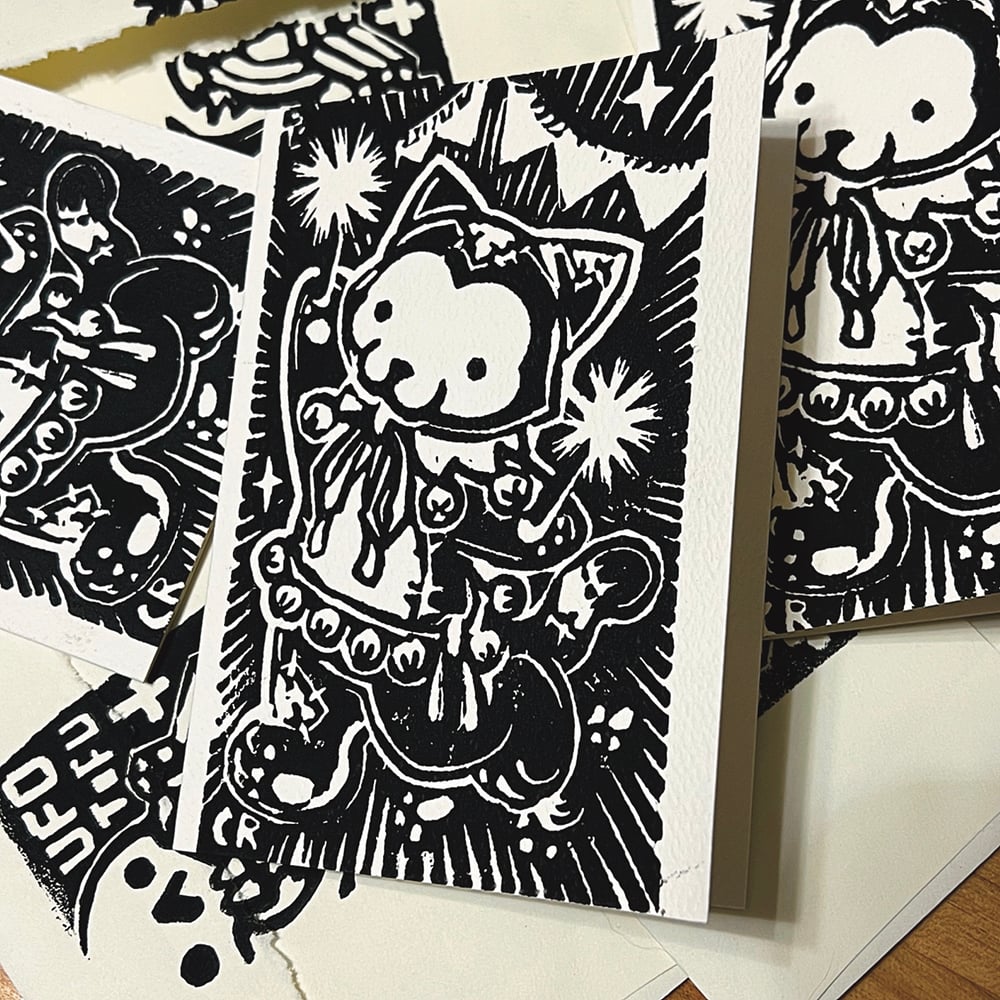 Woodblock Carving Coldpress Paper Speedball Print 3x5 inches 🖤Prints 3x5 inches 🖤 Postcard 4” x 6” (set of 5) 🖤Cards 3 1/2”x 4 7/8” (blank) Stamped Envelopes: 9.2 x 13 cm (set of 6) Free S&H