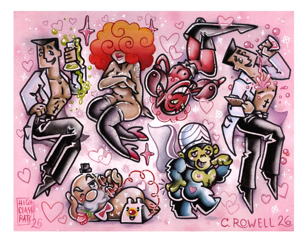 Sexy pinup styled hand-painted flash sheet of some of my favorite droogs from the PowerPuff gangđź’•